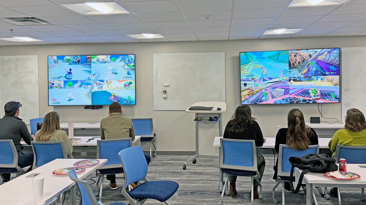 The Fort Worth office gathered for its monthly team lunch, enjoying pizza and a friendly Mario Kart gaming session together.